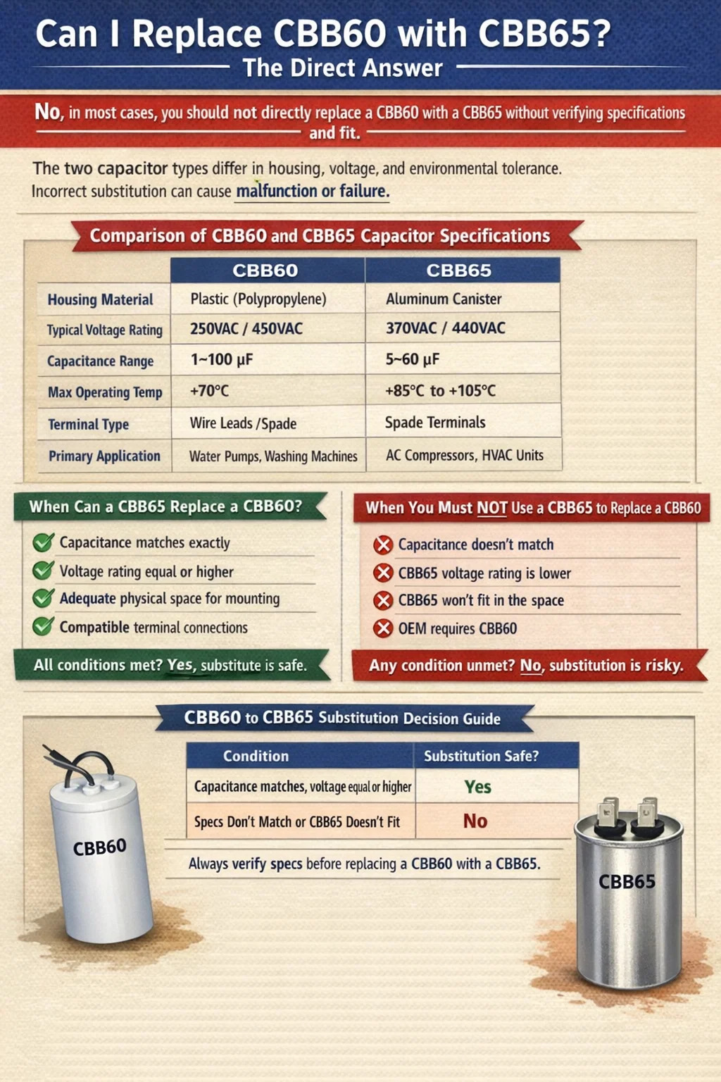 Összefoglalás: CBB60 vs CBB65 helyettesítési döntési útmutató